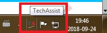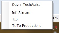 L’icône de TechAssist est situé en bas à droite à côté de l’heure. Si vous cliquez sur le bouton de droite de la souris, un menu s’ouvrira. Si vous double cliquez sur cette icone, TechAssist ce lancera à nouveau.
